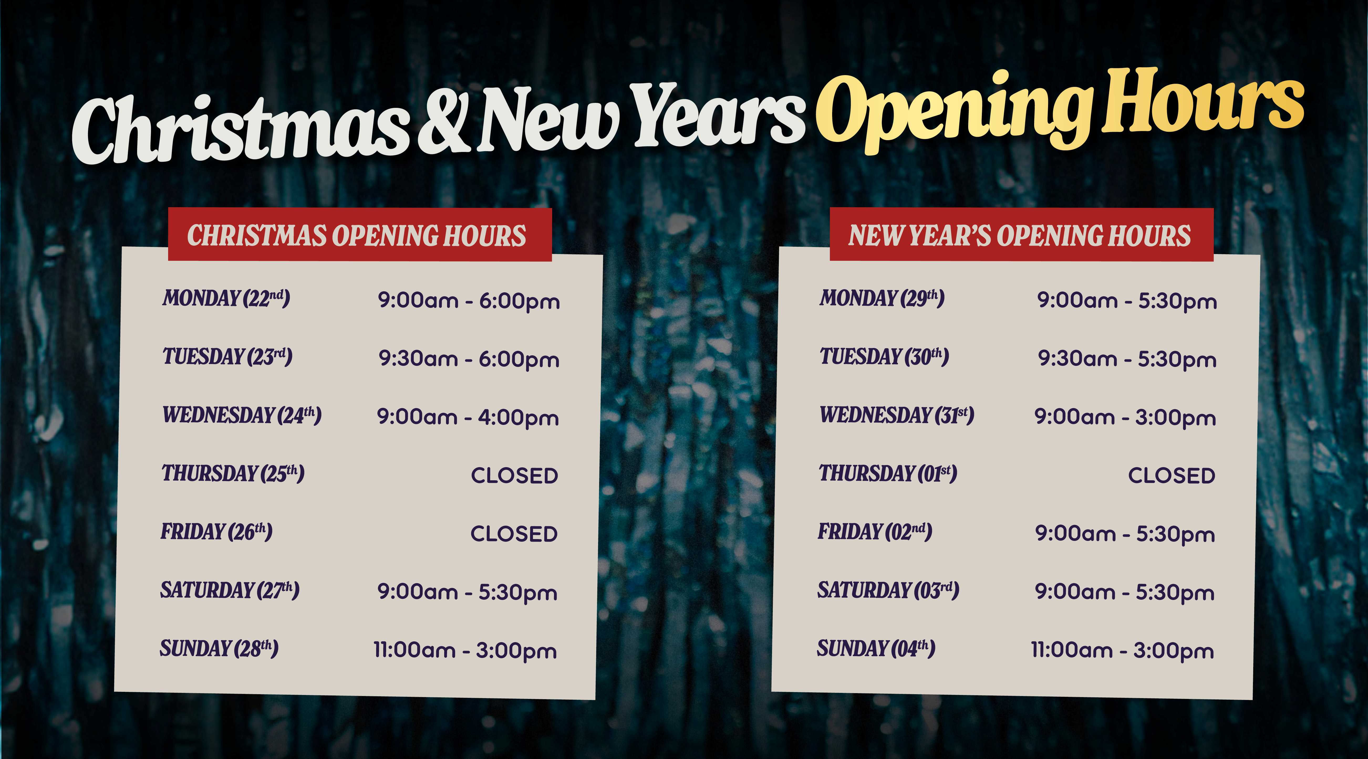 - Shop opening hours