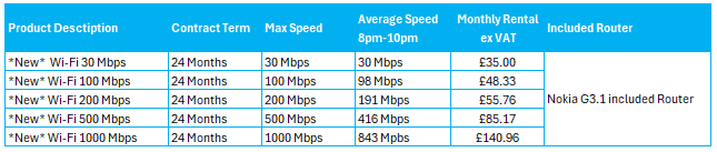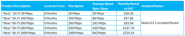 - All products includes Wi-Fi Experts installation and support whilst in contract