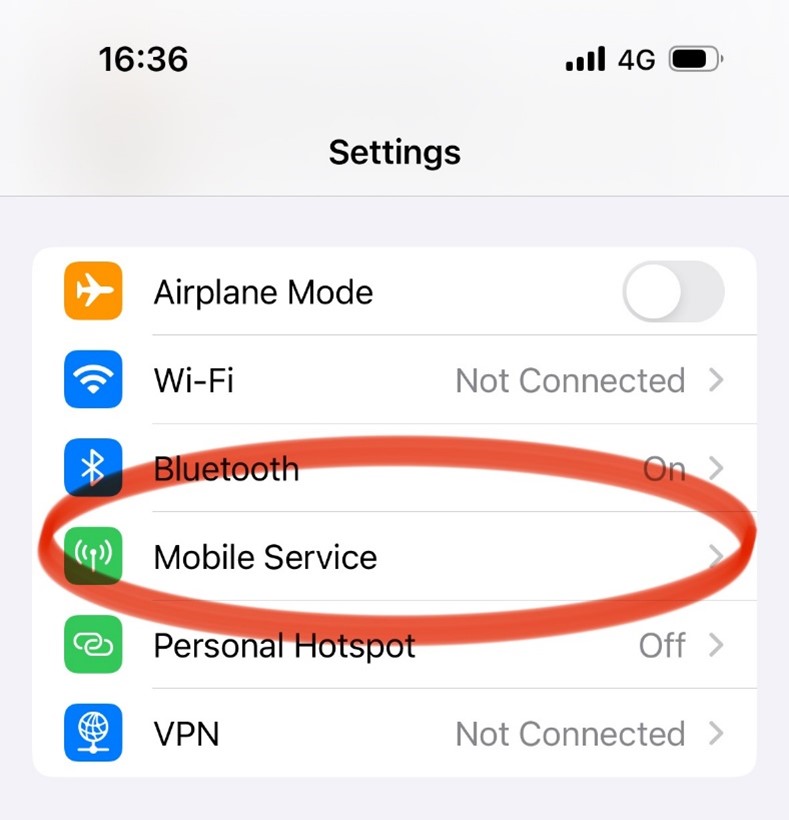 1. First, go to the Settings screen of your iPhone. From there, tap on “Mobile Service”. There, tap the “Add eSIM” to go to the Set Up screen.